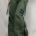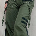 Pantaloni cargo svasati punk a vita bassa con cerniera e spacchi