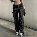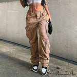 PrincessAce - Pantaloni dritti a vita alta con tasche e gamba larga, stile streetwear