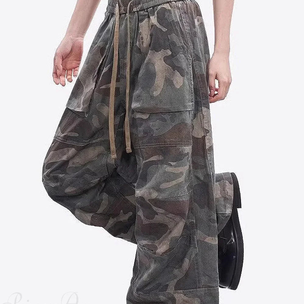 Pantaloni cargo mimetici a vita alta e gamba larga