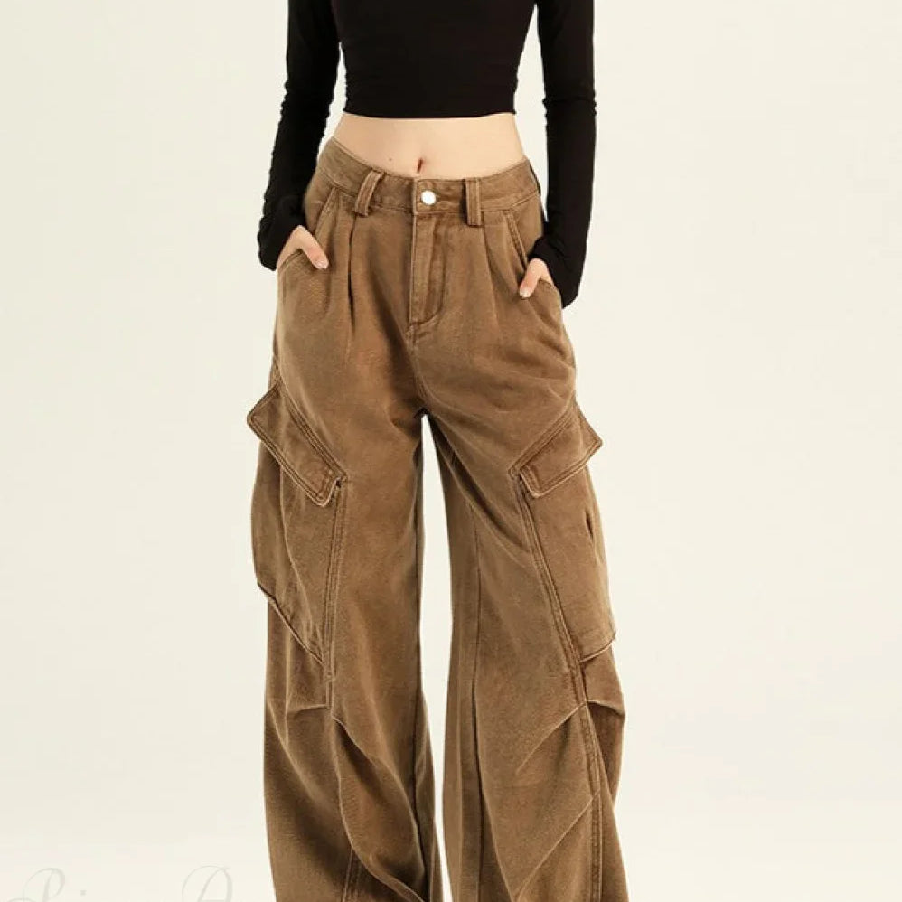 Pantaloni cargo a gamba larga destrutturati e curvi