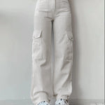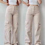 Pantaloni cargo da donna - Vita alta - Vestibilità ampia - Tasche laterali funzionali
