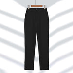 Ogni dettaglio del completo Désirée è stato attentamente studiato per aggiungere un tocco di raffinatezza. Il top presenta un elegante scollo a V e maniche a tre quarti leggermente svasate, che aggiungono un tocco di sobria femminilità. I pantaloni a vita alta con cintura integrata accentuano il punto vita e slanciano la silhouette, offrendo al contempo un look sofisticato e moderno. Le finiture impeccabili e le cuciture precise testimoniano la qualità e la cura riposte in ogni capo.
