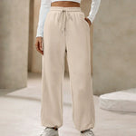 Pantaloni casual da donna – Vita alta – Vestibilità ampia – Coulisse regolabile – Tessuto morbido