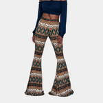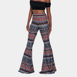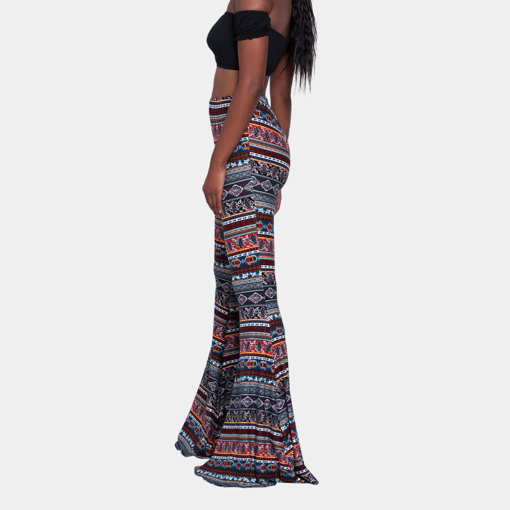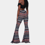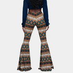 Pantaloni a zampa da donna - Vita alta - Stampa bohémien - Svasati e aderenti