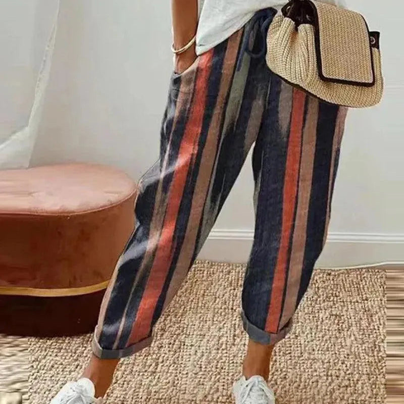 Pantaloni da donna - Vestibilità ampia - Vita elasticizzata - Stampa a righe e quadri