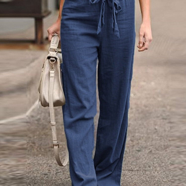 Pantaloni larghi da donna – Tessuto traspirante – Taglio fluido – Elastico in vita in stile bohémien