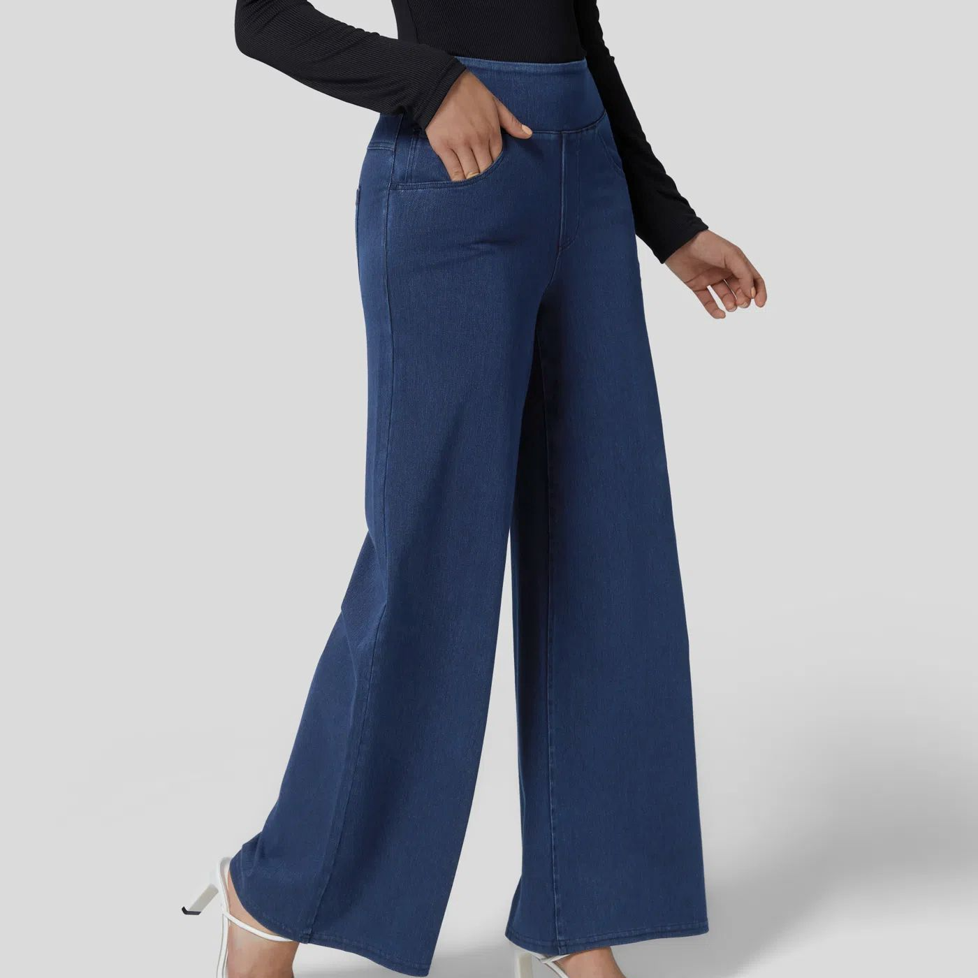 Pantaloni larghi da donna – Vita alta – Taglio fluido – Stile denim strutturato