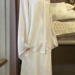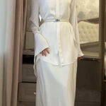 Completo due pezzi con camicetta in raso vintage e gonna aderente