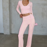 Completo due pezzi svasato a vita alta con cravatta tinta unita ed elegante