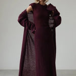 Completo due pezzi composto da cardigan in maglia vintage e abito senza maniche
