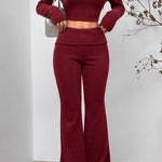 Completo due pezzi sexy con top corto e pantaloni aderenti con spalle scoperte