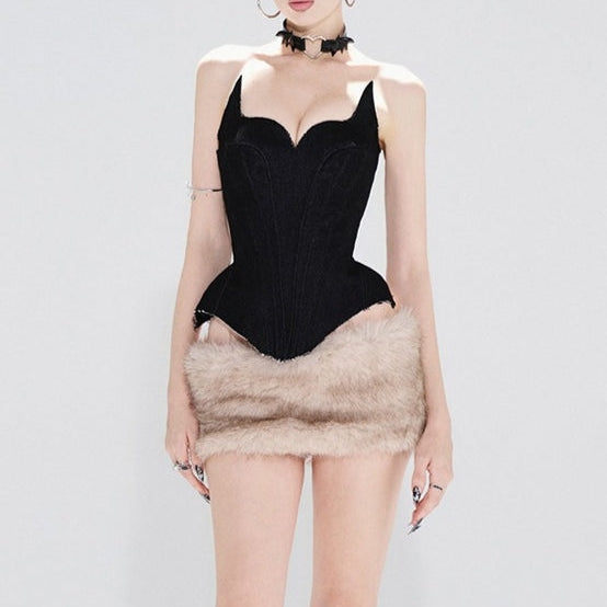 Completo due pezzi sexy con canotta in pile e lacci senza schienale