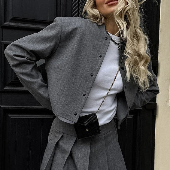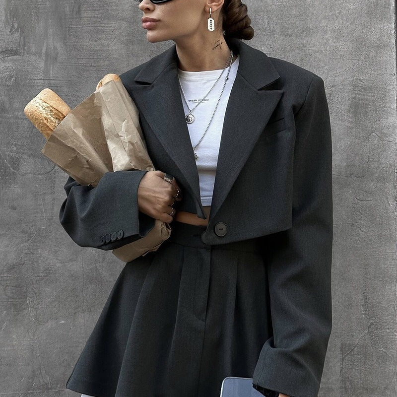 Elegante e creativo stile street style, completo due pezzi con camicia a maniche lunghe e tinta unita