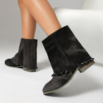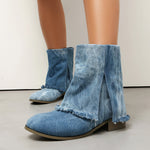 Stivaletti da donna – Vestibilità comoda – Tacco piatto – Tessuto effetto denim invecchiato – Facili da infilare