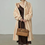 Elegante cappotto in pelliccia sintetica di visone con collo alto