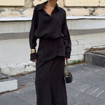 Elegante e creativo stile street style, completo due pezzi con camicia a maniche lunghe e tinta unita