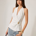 Camicetta senza maniche con scollo a V e dettagli in metallo