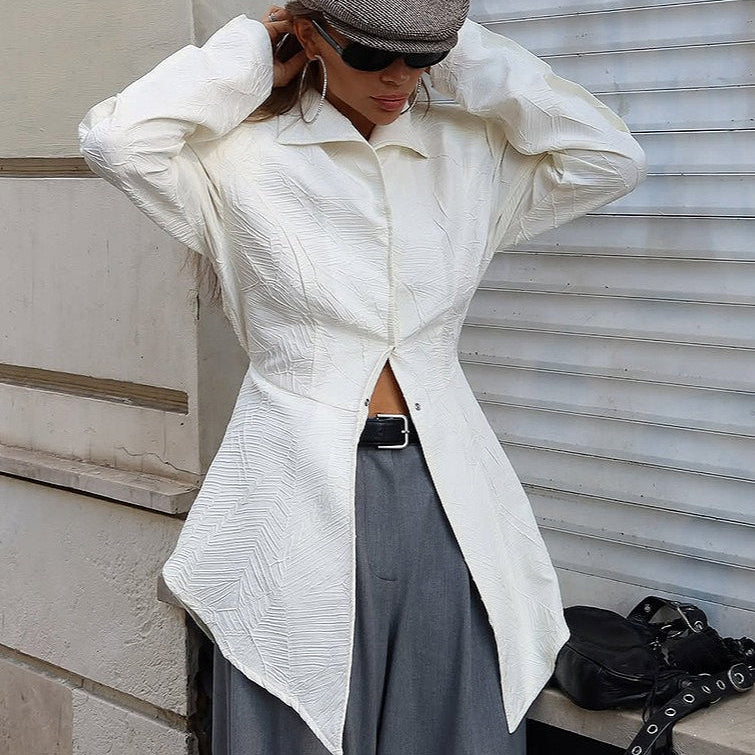 Blusa con colletto unito e spacco in vita