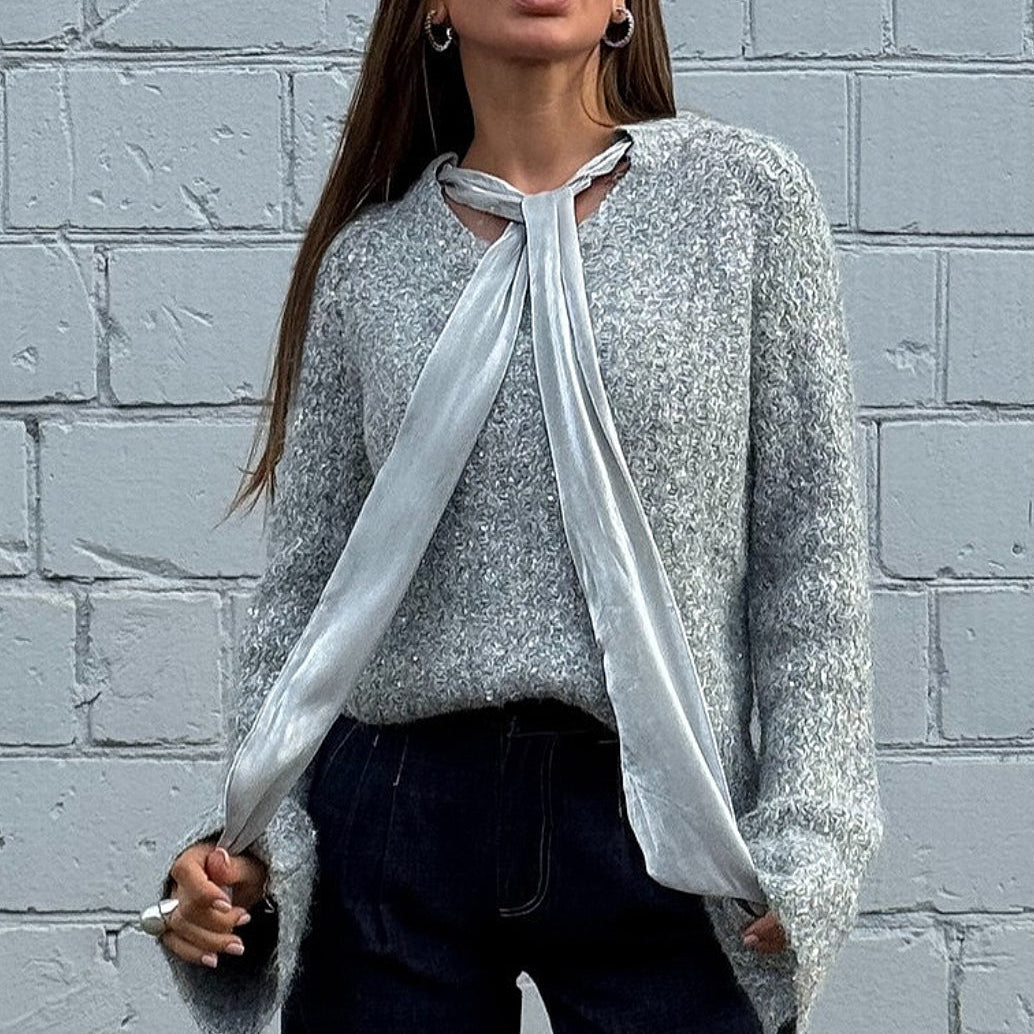 Blusa morbida con maniche a campana in raso scintillante