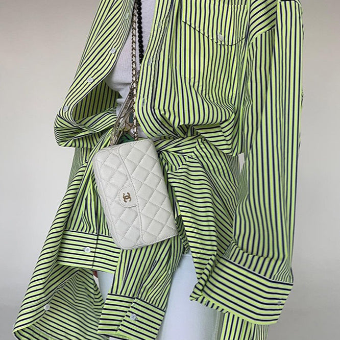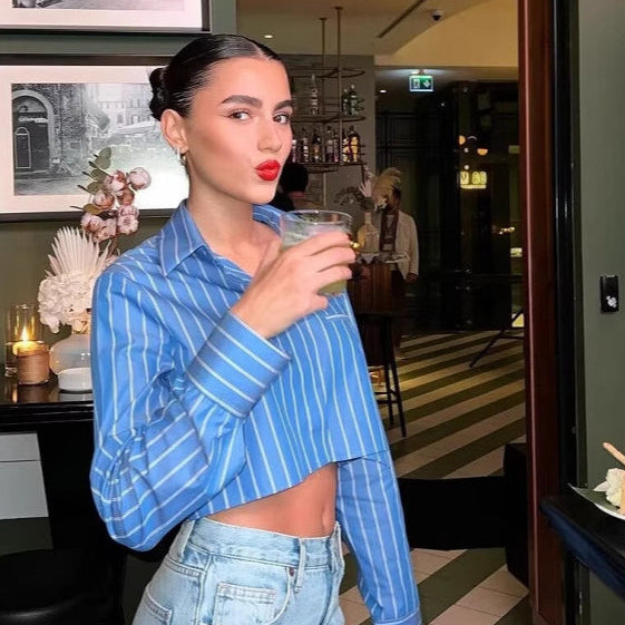 Camicia corta e ampia a righe a maniche lunghe