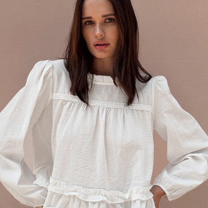 Blusa ampia con scollo tondo e volant