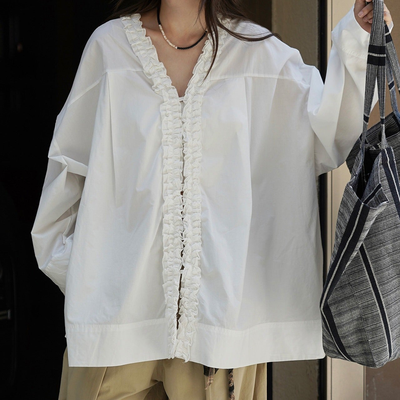 Camicetta ampia con colletto arricciato