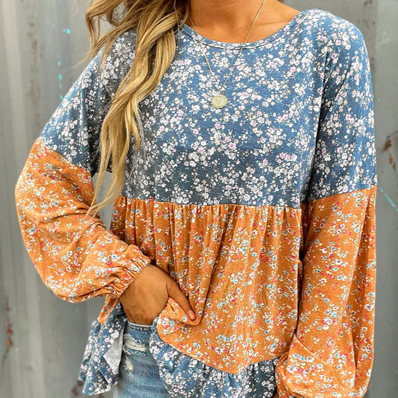 Camicetta a maniche lunghe con patchwork arricciato