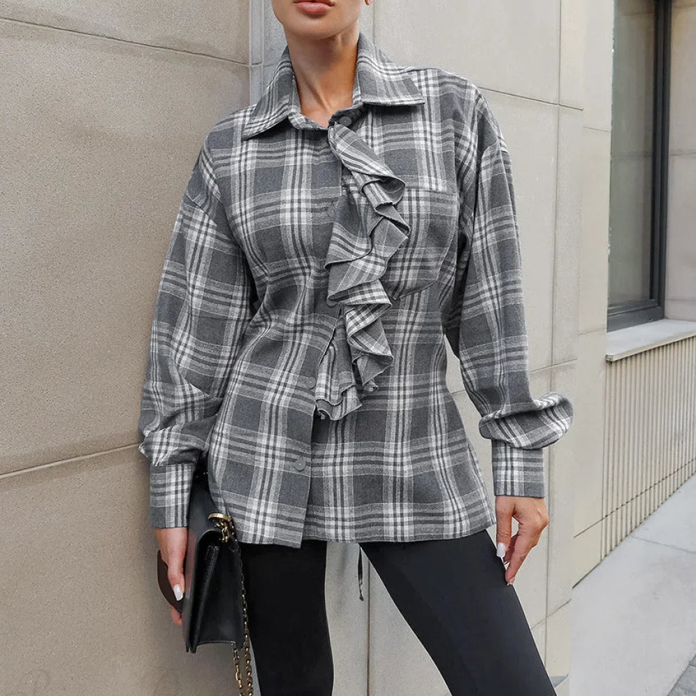 Blusa alla moda da pendolare con scollo a V e volant