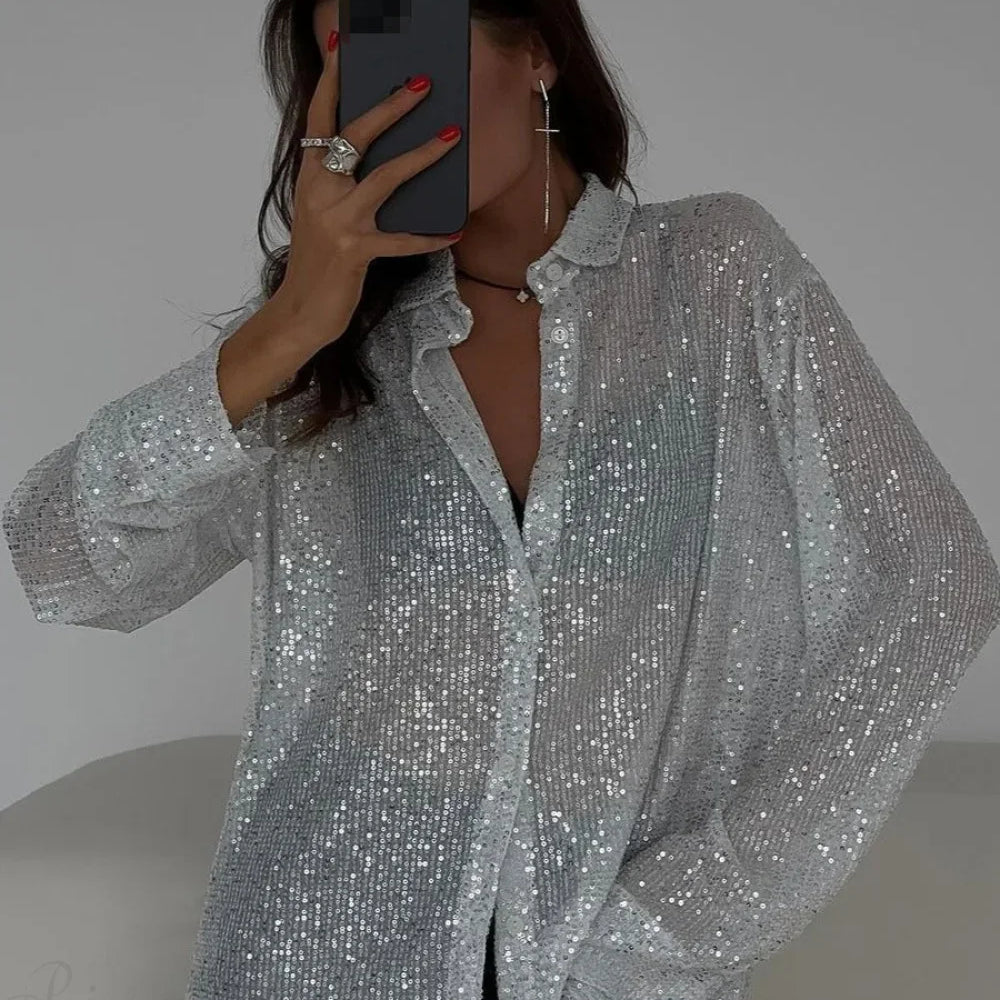 Blusa aperta sul davanti con maniche lunghe in paillettes