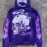 Felpa con cappuccio e zip stile cartone animato hip-hop Y2K Dark