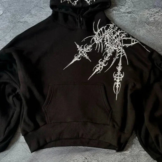 Felpa con cappuccio vintage street edgy con stampa di strass