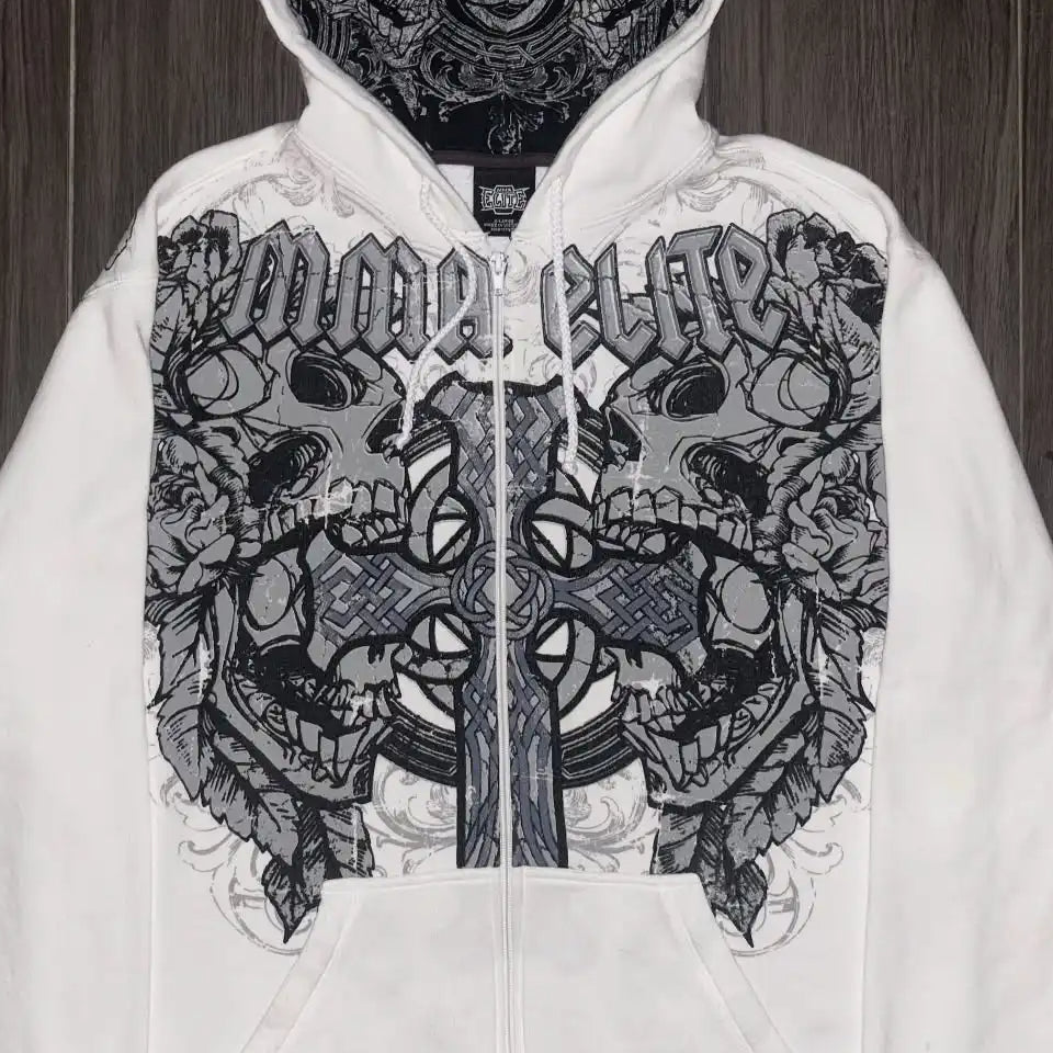 Felpa gotica Y2k con zip ricamata retrò