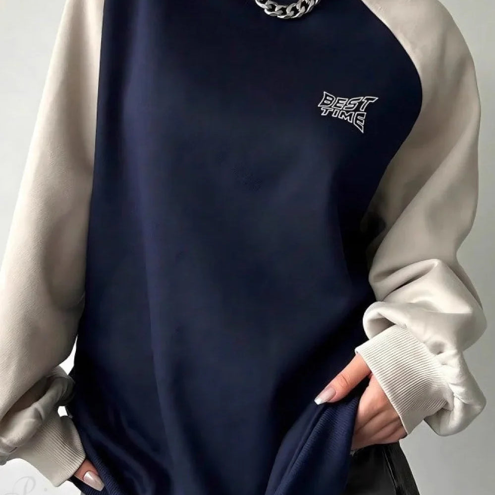 Felpa girocollo con maniche raglan e blocchi di colore