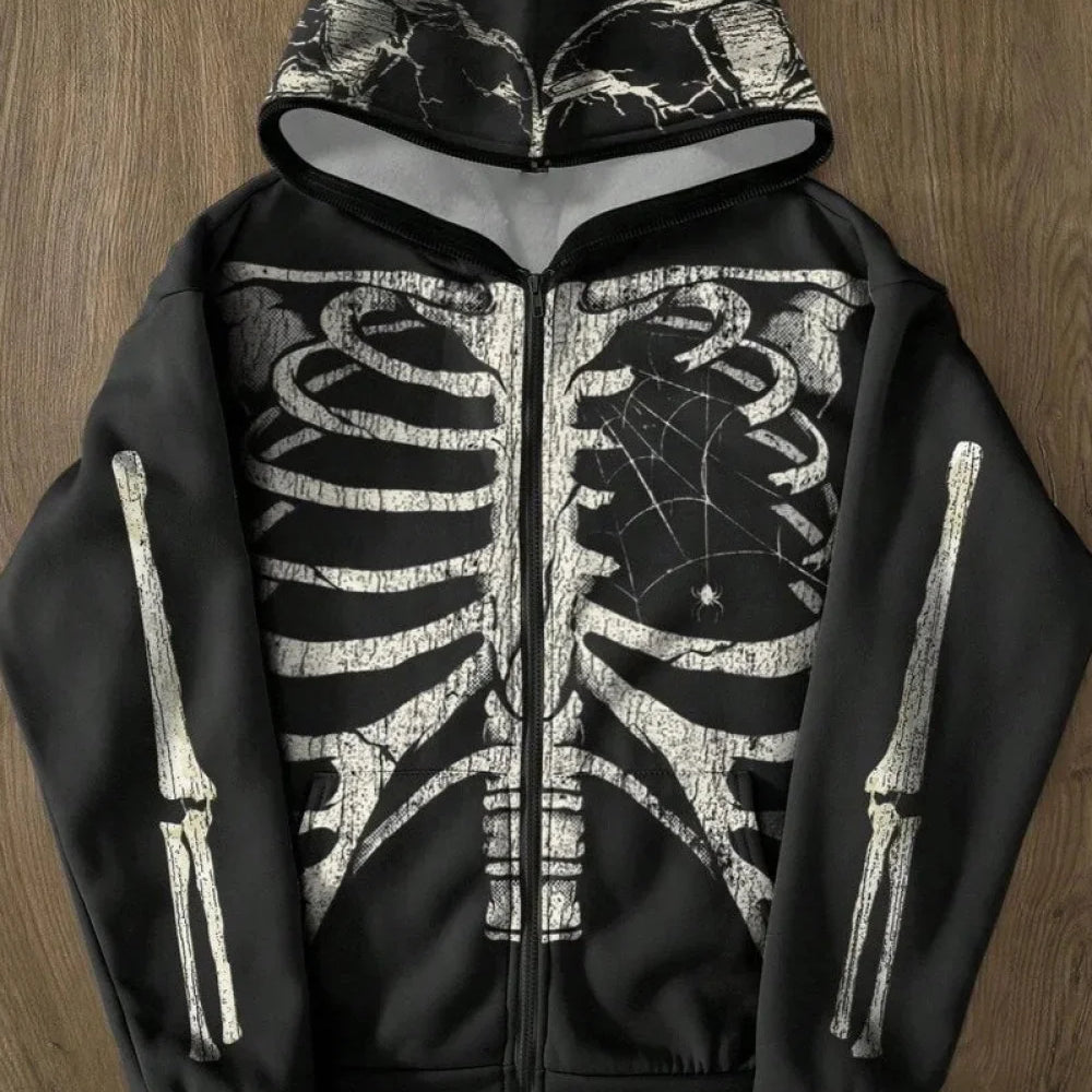 Felpa con cappuccio con stampa teschio retrò Harajuku