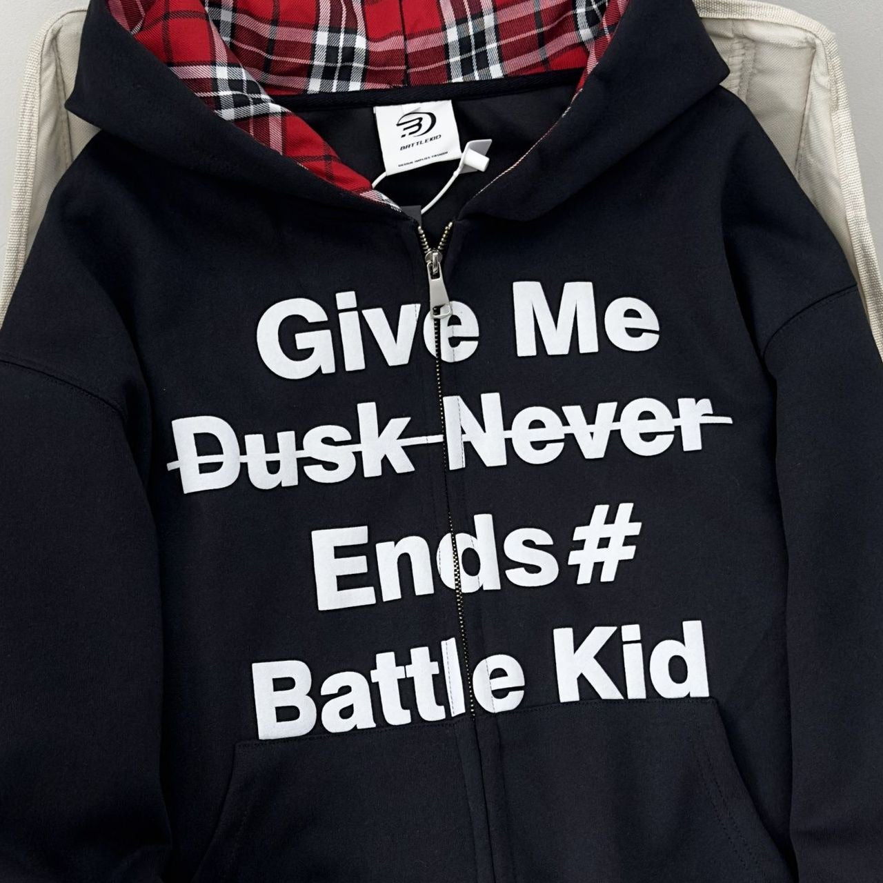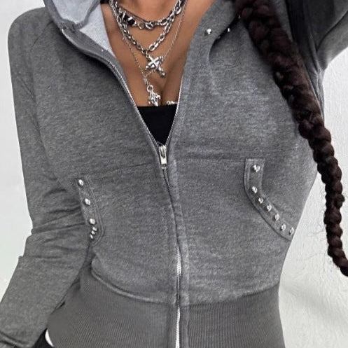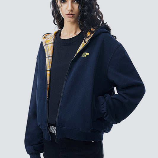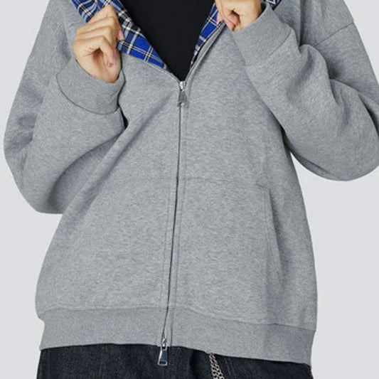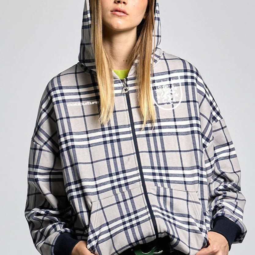 Felpa con cappuccio Y2K con zip e stampa a quadri