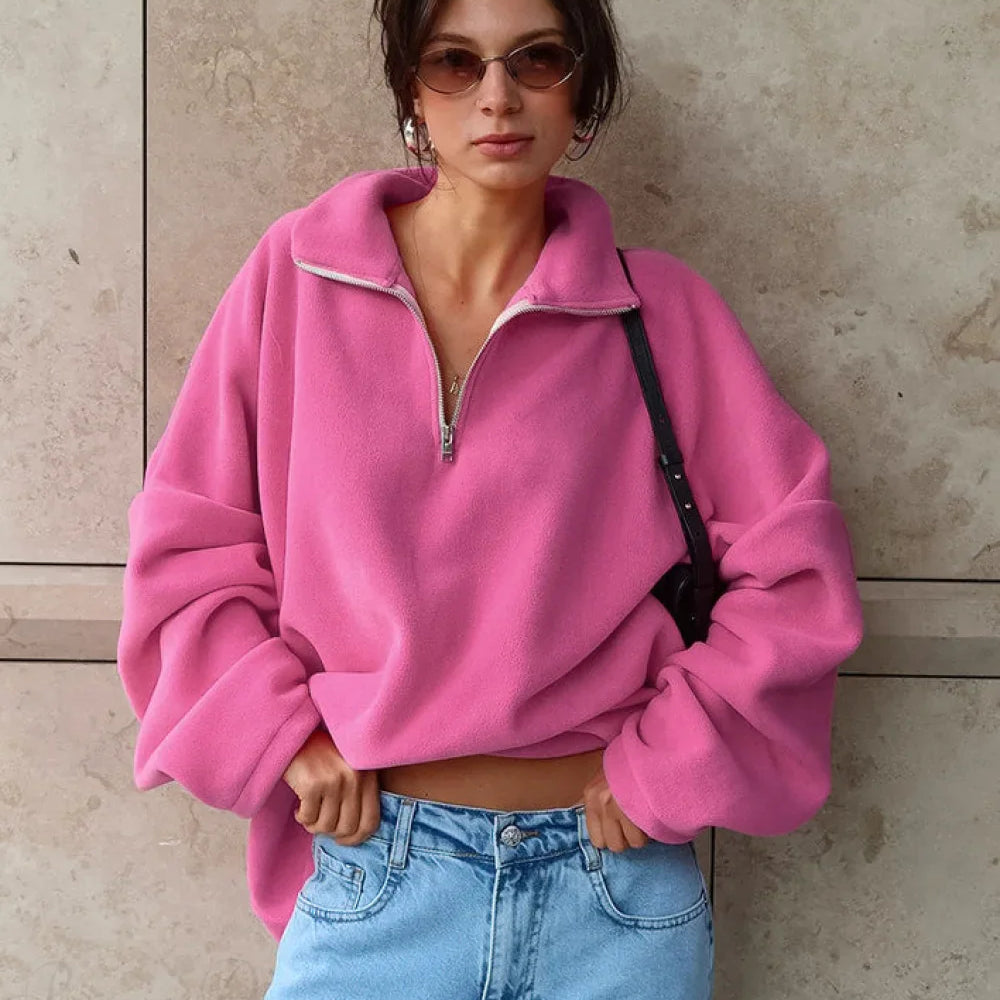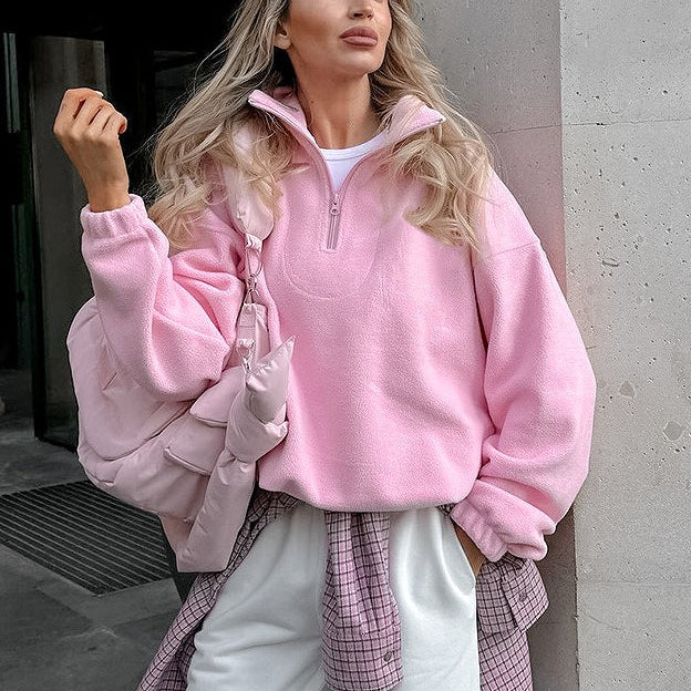 Felpa larga e spessa in pile polare rosa