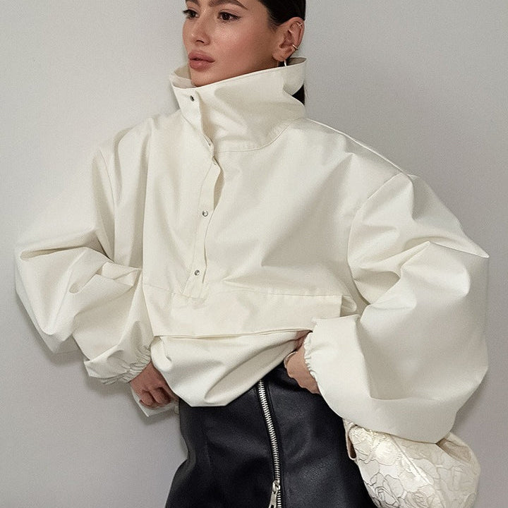 Felpa minimalista con bottoni larghi e tartaruga solida