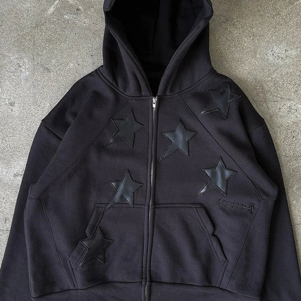 Felpa con cappuccio e zip con stampa a stella minimalista