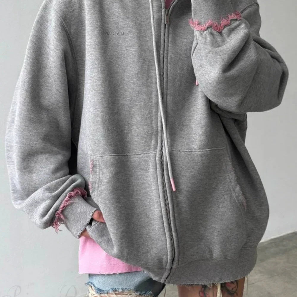 Felpa con cappuccio rosa con zip e effetto consumato