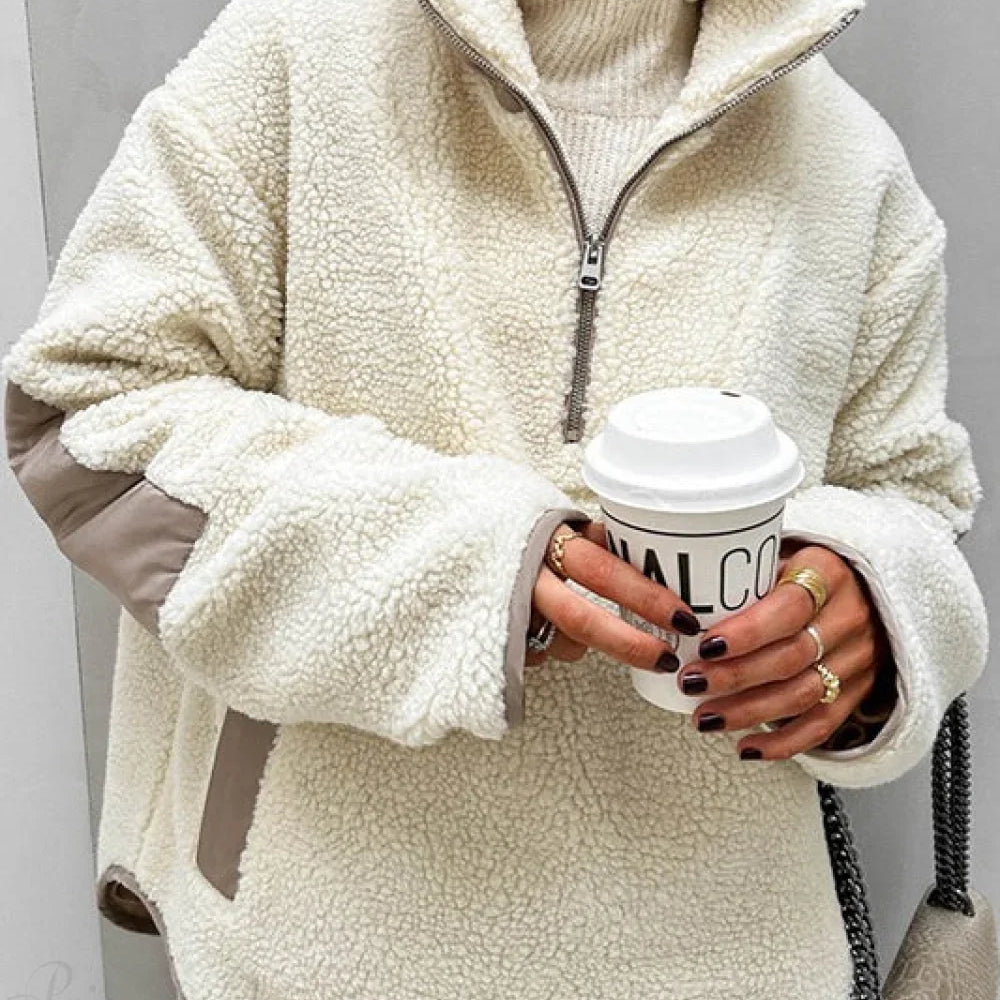 Felpa larga in pile con collo alto