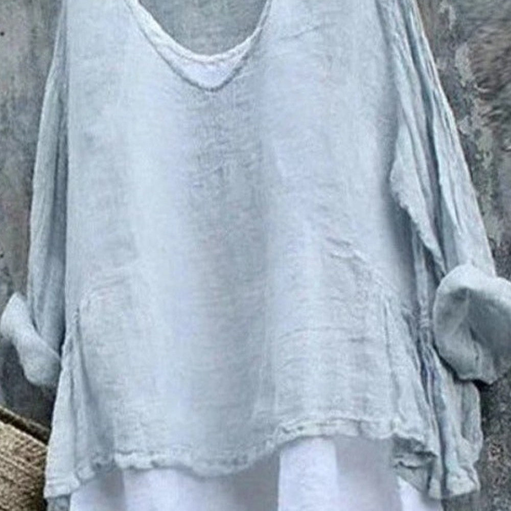Top corto da donna – Vestibilità ampia – Lino leggero – Scollo a barca – Maniche a 3/4 morbide
