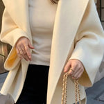 Elegante cappotto marrone in lana con cappuccio