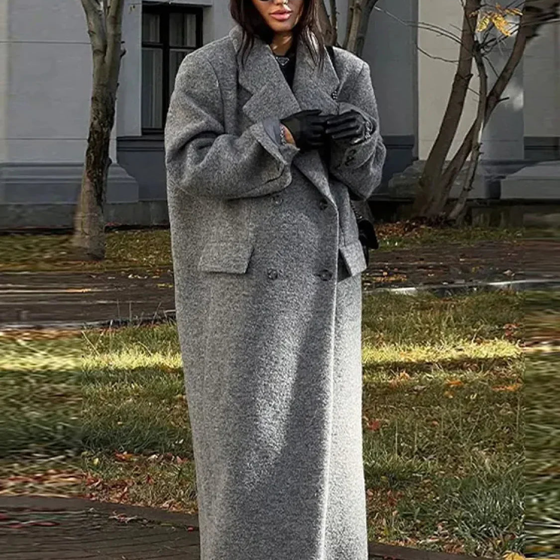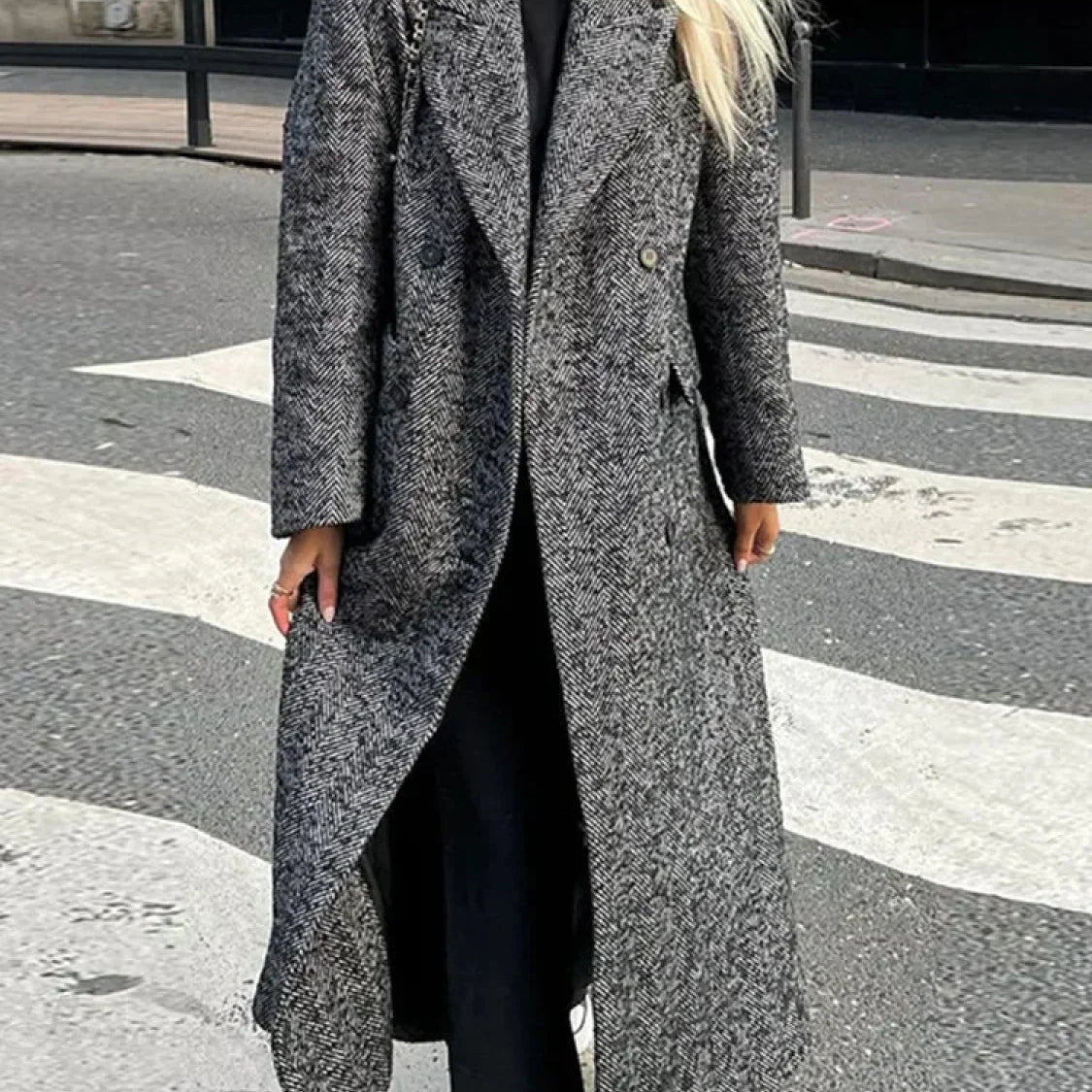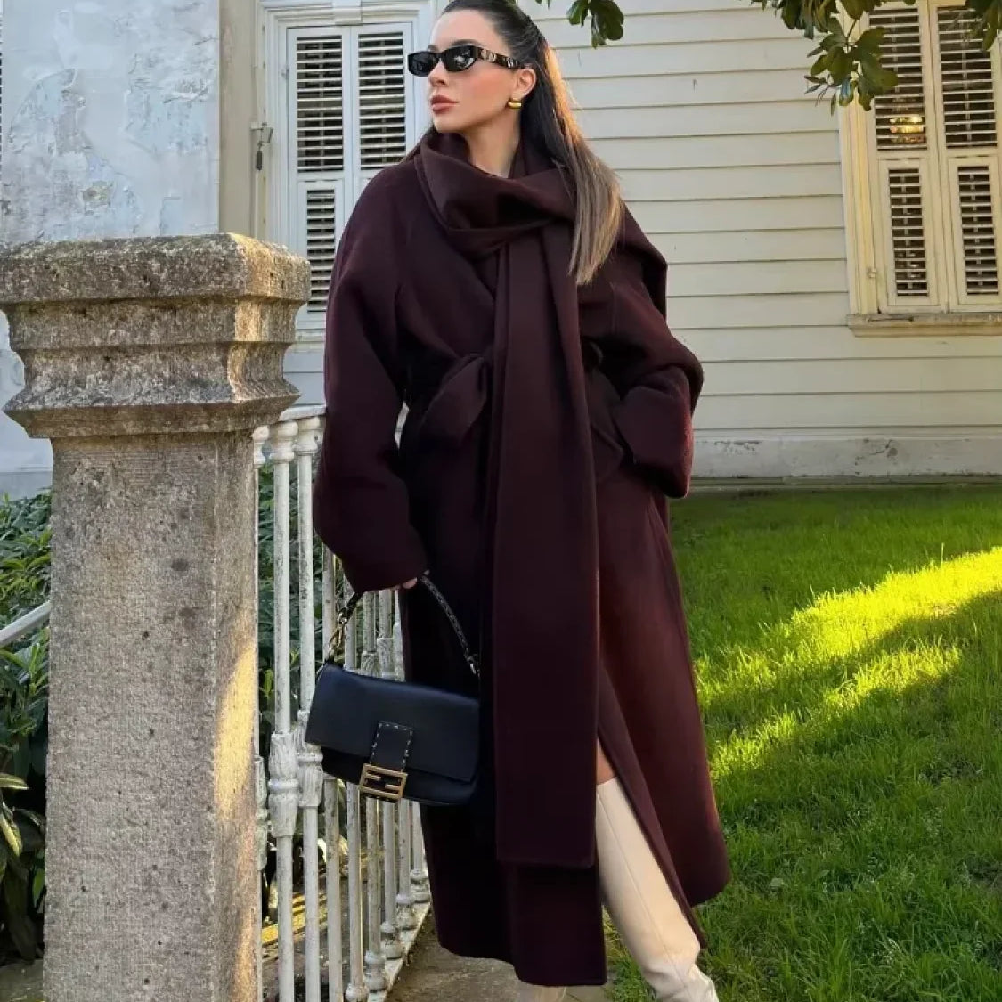 Elegante cappotto lungo in lana con cintura