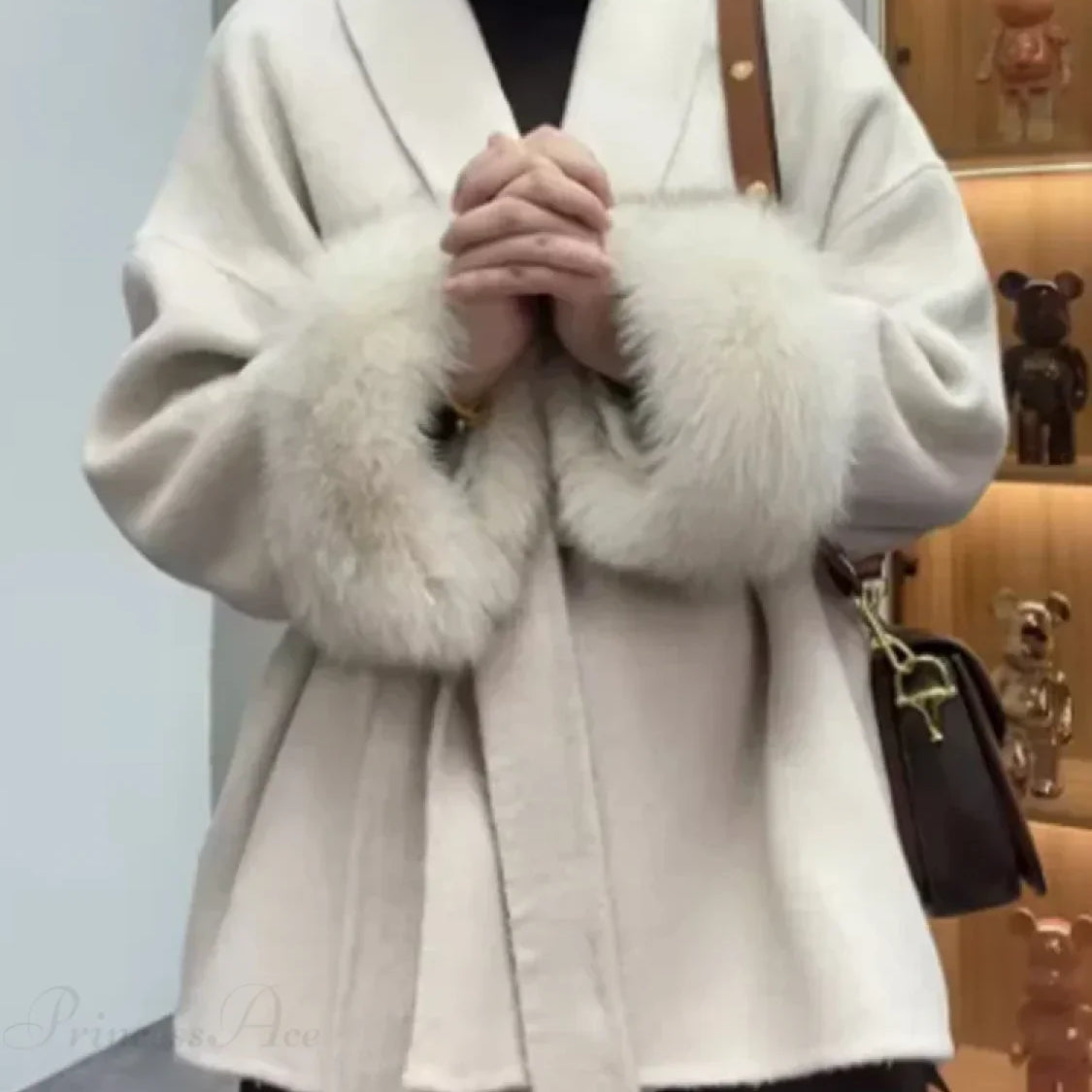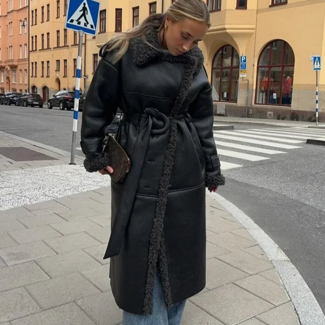 Cappotto lungo e largo con revers in pelliccia sintetica