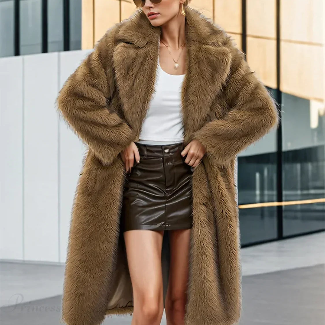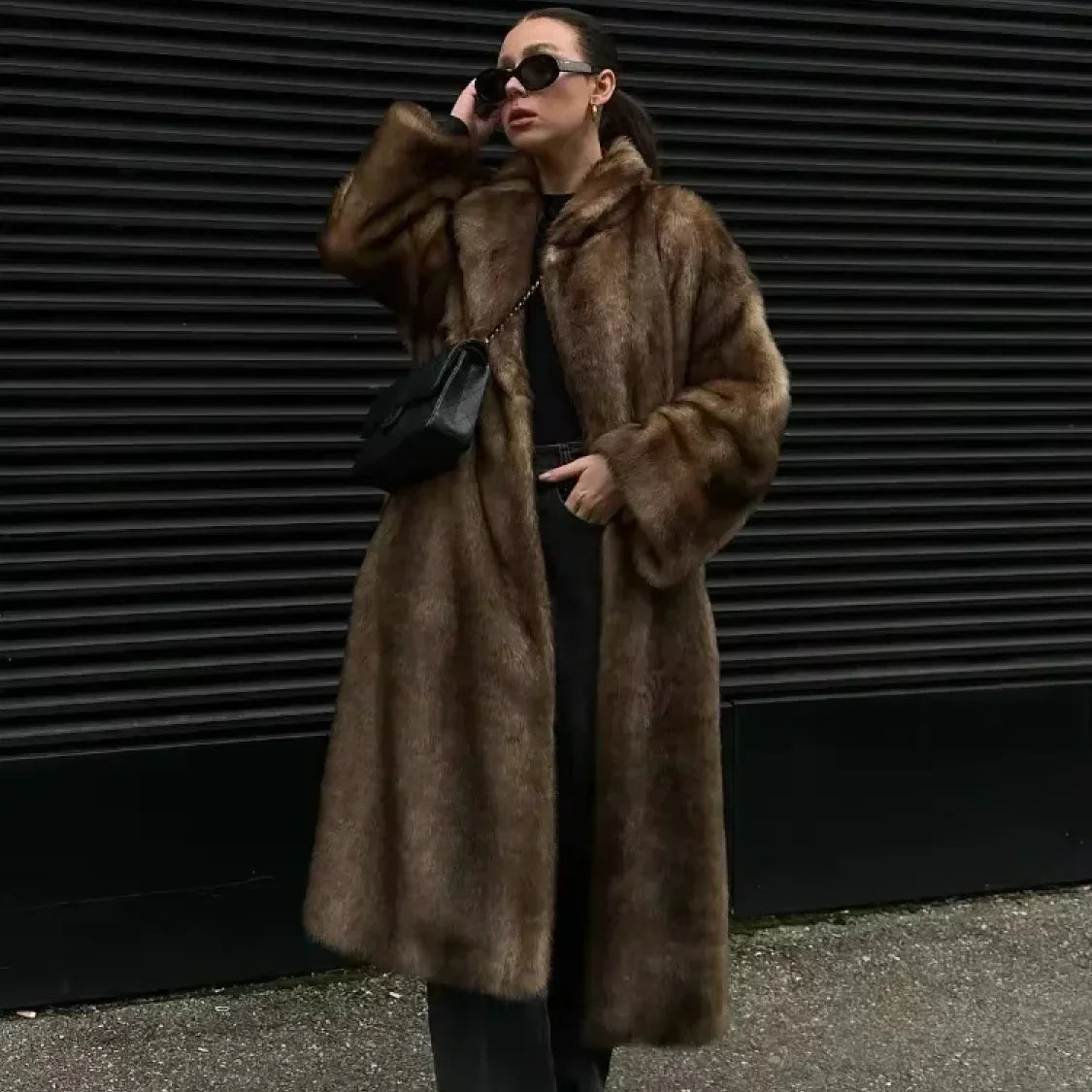 Cappotto casual in pelliccia sintetica marrone soffice