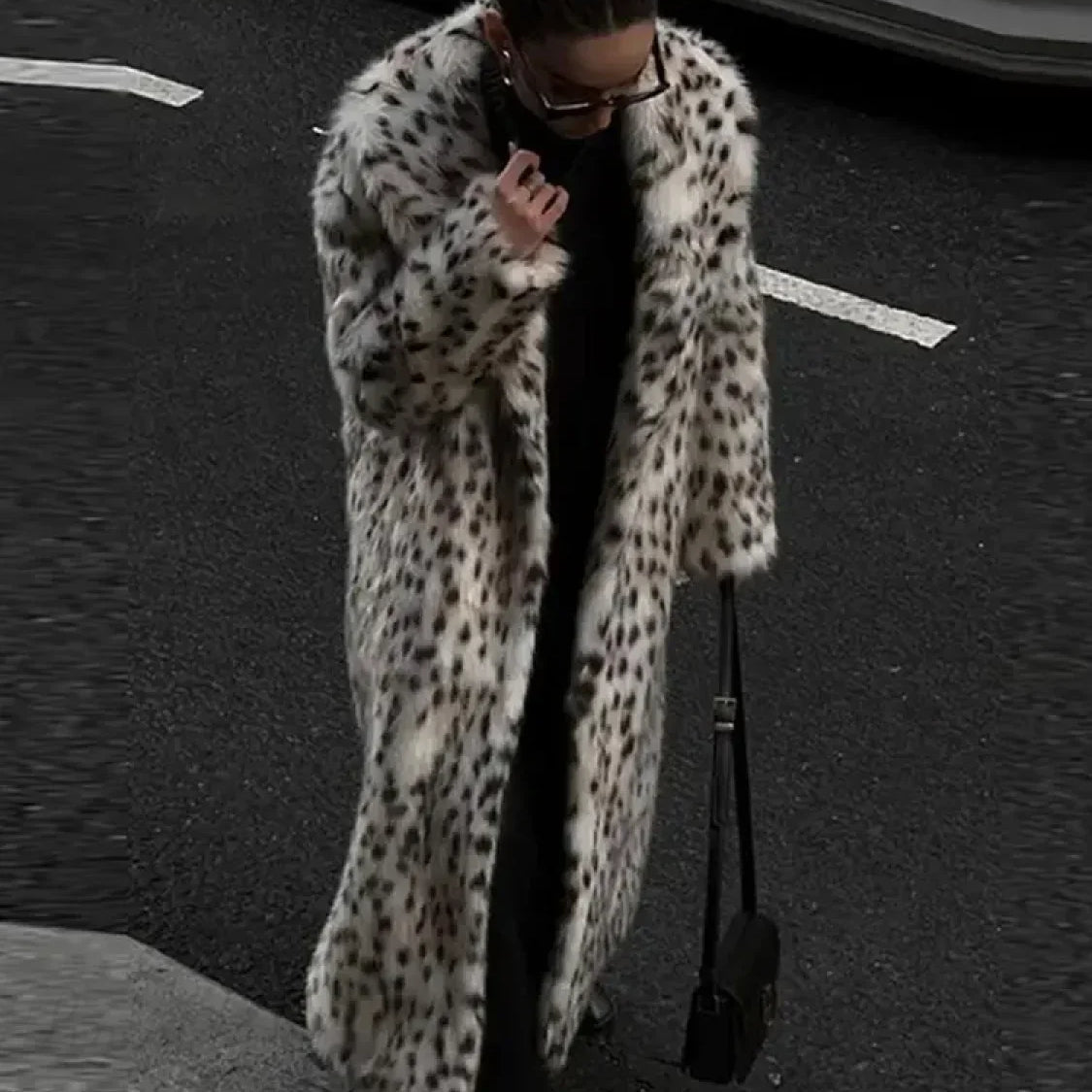 Cappotto invernale in pelliccia sintetica di visone leopardato