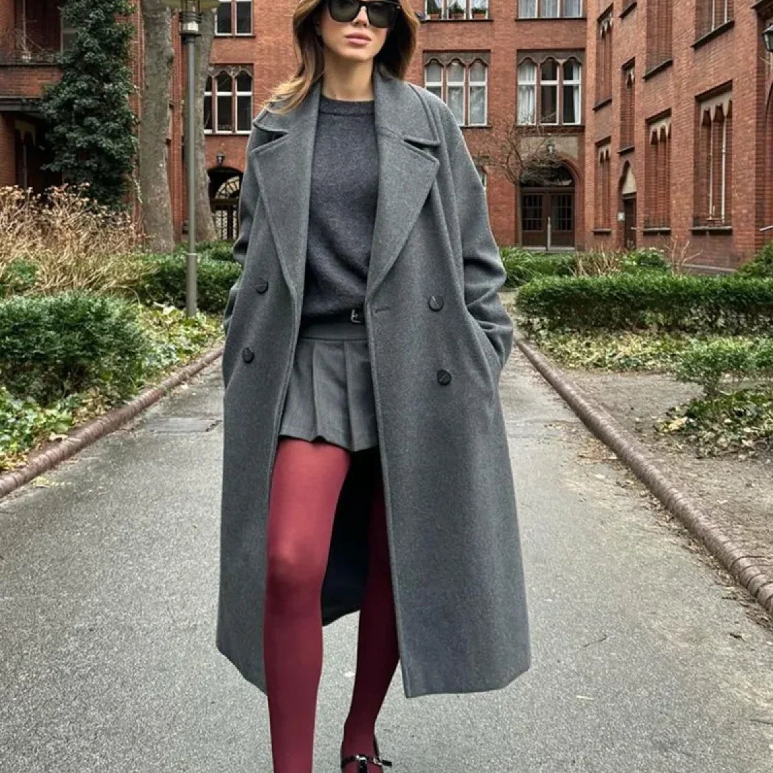 Elegante cappotto di lana a maniche lunghe con cintura