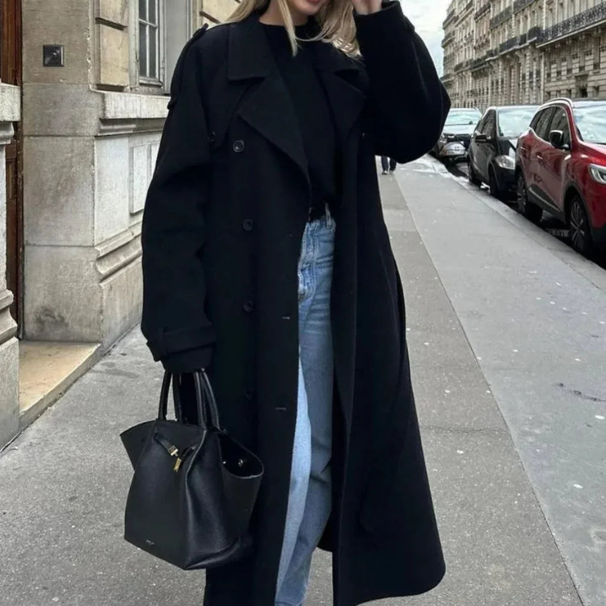 Cappotto oversize in lana nera con due bottoni
