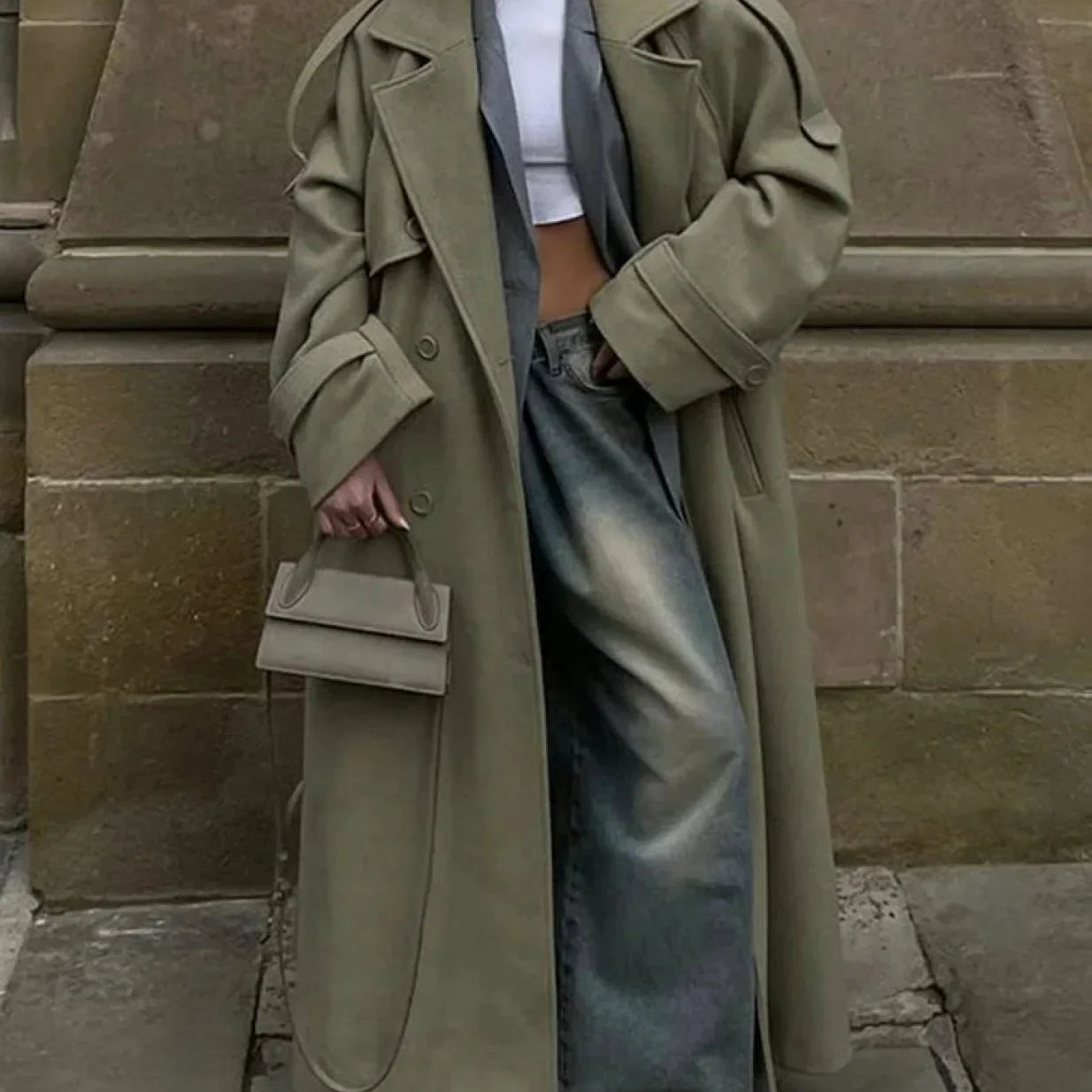 Soprabito lungo casual con lacci e patchwork