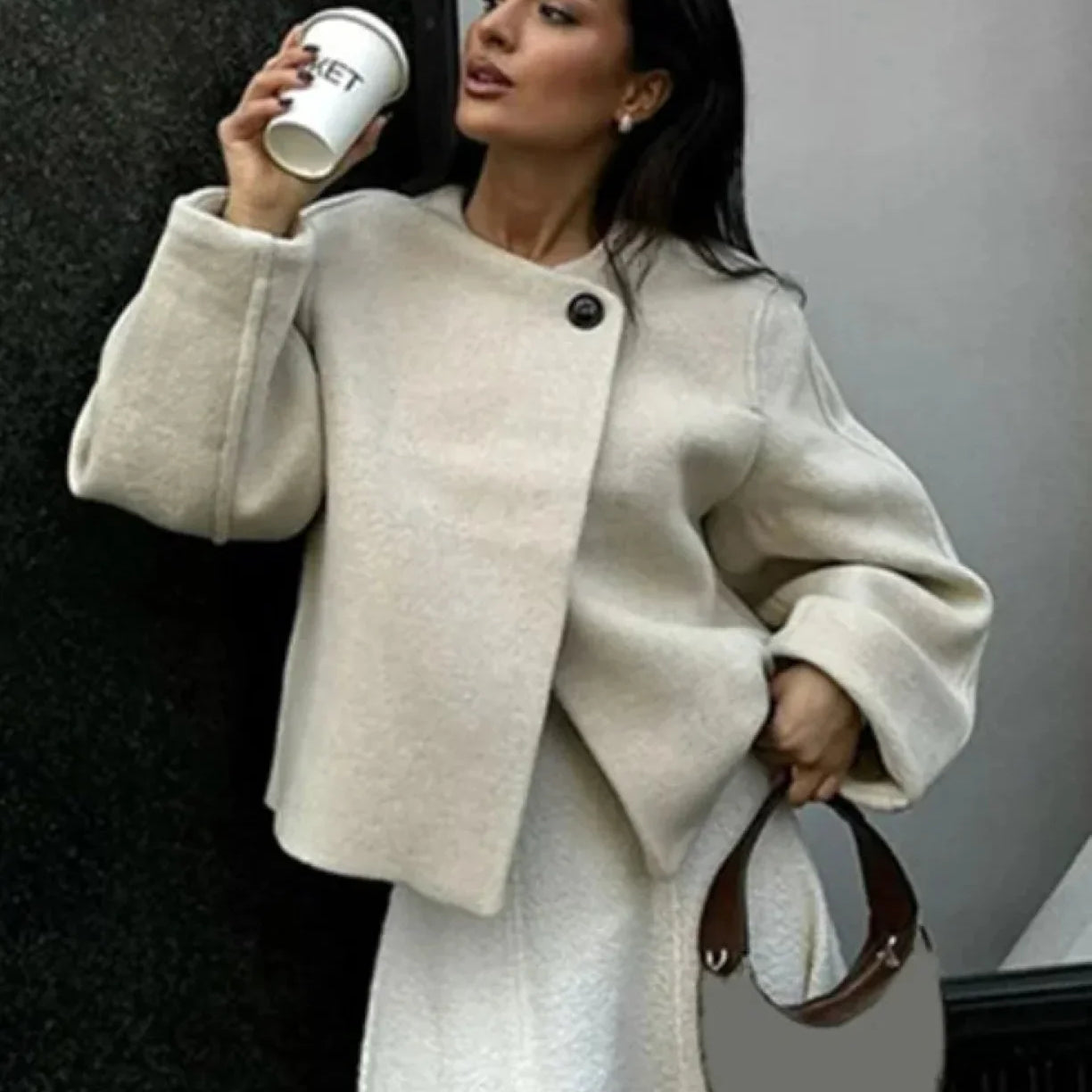 Elegante cappotto in lana tinta unita con un bottone